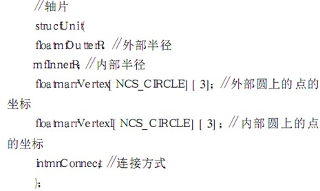 在進(jìn)行三維動(dòng)畫(huà)顯示之前,我們必須對(duì)軸的模型加以確定,因?yàn)檐?chē)削時(shí)需要改變軸的尺寸,因此必須用一種方法來(lái)記錄軸上面的尺寸. 用下面的結(jié)構(gòu)體來(lái)表達(dá)軸上的尺寸信息: