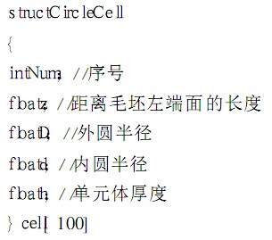 分析數(shù)控車(chē)床加工的特點(diǎn): 數(shù)控車(chē)床的毛坯通常為棒料,為回轉(zhuǎn)體零件,而且刀具做的只是X方向和Z方向上的二維運(yùn)動(dòng). 因此在本系統(tǒng)的仿真算法中,首先將毛坯進(jìn)行細(xì)分為單位厚度的小圓柱單元,小圓柱單元的厚度根據(jù)仿真所需的精度和顯示效果來(lái)決定[ 4]小圓柱單元的具體的數(shù)據(jù)結(jié)構(gòu)為:
