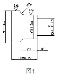 如圖,實際測得零件的直徑(預(yù)留O.SOmm的余量)分別是20.52mm,28.54mm,3856mm(分別超差0.02mm,0.04mm,0.06mm)、如果按照補償加工的話,精加工向卜補償0.04mm,則cp28的外圓正好,cp38的外圓還大0.02mm)如果滿足后端,則前面的所有的都會超差、