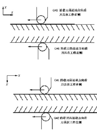 注意在編寫的過程中有刀補位置的設(shè)置,可以參考圖4進(jìn)行設(shè)置、