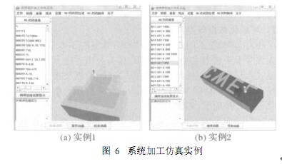 數(shù)控語(yǔ)法分析模塊的任務(wù)是在詞法分析基礎(chǔ)上將數(shù)控加通過(guò)線程及 Java 3D 對(duì)動(dòng)畫效果、 交互式操作、 形體組合、復(fù)雜的應(yīng)用程序的支持等來(lái)實(shí)現(xiàn)仿真 (模型顯示于界面右部 ) ,并可通過(guò)按鈕和菜單對(duì)仿真的過(guò)程進(jìn)行控制。圖 6為系統(tǒng)運(yùn)行實(shí)例。