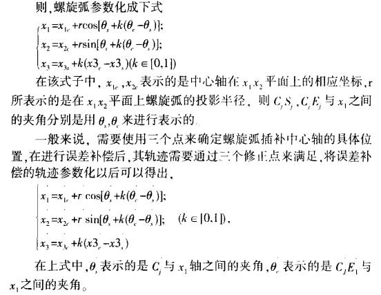 可以將螺旋插補(bǔ)運(yùn)動(dòng)所形成的軌跡看作是在平行于坐標(biāo)面的平面位置上實(shí)施圓弧插補(bǔ)運(yùn)動(dòng)的時(shí)候也在第二軸 方向 進(jìn)行直線插補(bǔ)運(yùn)動(dòng),其中, 可以將圓弧插補(bǔ)當(dāng)成是直線插補(bǔ)暫時(shí)是零時(shí)的螺旋插補(bǔ),其并沒(méi)有失去一般性質(zhì), 設(shè)在平行于 !,, x 2的相應(yīng)平面內(nèi)進(jìn)行圓弧插補(bǔ),則直線插補(bǔ)的方向則為x, 方向 不難發(fā)現(xiàn), 當(dāng)實(shí)施刀具切削行為時(shí),其主要是沿著螺旋弧線進(jìn)行運(yùn)動(dòng)的則,螺旋弧參數(shù)化成下式