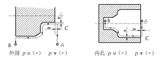 u w精加工余量正負的判斷方法: