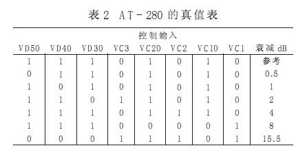 MAX038 的輸出信號本身在輸出級有內(nèi)部的輸出放大器, 具有很強的驅(qū)動能力, 且輸出阻抗小于 0.1Ω, 但是, 由于其輸出波形的幅度為 2VP- P, 若要調(diào)節(jié)它的輸出幅度, 特別是當(dāng)輸出頻率較高、 輸出波形不是正弦波時,要進行幅度放大相當(dāng)困難。所以, 要為 MAX038 3 10Hz~10MHz 輸出波形配置一種通用的全帶寬后級輸出放大器。放大以后的輸出信號送入數(shù)字衰減器 AT- 280進行衰減。AT- 280 是一種采用 SOIC- 16 塑封表貼封裝形式的 5 位、 0.5B 步距的數(shù)字衰減器, 非常適用于高精度衰減、 快速開關(guān)、 極低功耗要求的場合, 其可靠性非常高。VC1、 VC10、 VC2、 VC20、 VC3、 VC30、 VC40、 VC50 分別為 數(shù) 據(jù) ; RF1 RF2 。AT- 280 的真值表如表 2 所示。