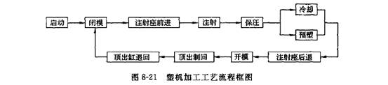 根據(jù)上述原理,塑機在一個加工周期中的工藝流程框圖如圖8-21所示。