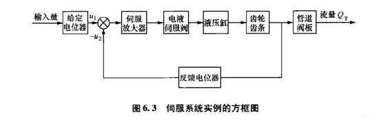 一個實際的液壓伺服系統(tǒng)無論多么復雜,都是由一些基本的元件組成的,例如圖6.所示的“管道流量(或靜壓力)的液壓伺服系統(tǒng)”可由圖6. 3所示的職能方框圖來表示。