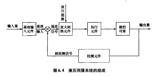 液壓伺服系統(tǒng)也稱為液壓隨動系統(tǒng)。在這個系統(tǒng)中,輸出量能自動、快速、準確地跟隨輸人量而變化,與此同時,輸出功率被大幅度地放大。其基本組成見圖6. 4 0