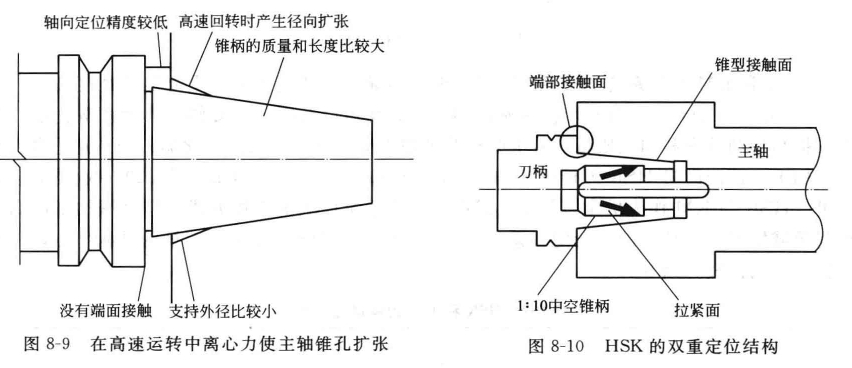 僅僅靠大錐度聯(lián)系,刀具與主軸的銜接剛性相對較低,當主軸轉(zhuǎn)速超過10000r/miH時,由