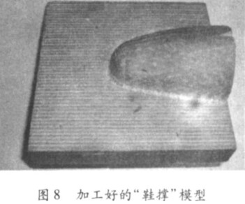 在實驗室條件下 ,采用華中 ZJK7532A數(shù)控銑床 , R3的球頭銑刀及工程塑料進(jìn)行加工 ,完成了“ 鞋撐 ” 模型加工 ,曲面輪廓完整 ,說明建模和進(jìn)、退刀方法是正確的。加工好的零件如圖 8所示。